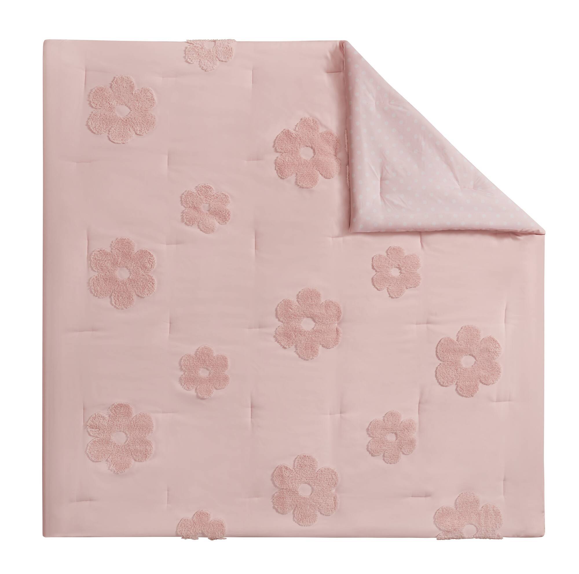 • Set includes comforter, 2 shams (1 in Twin), and 1 flower shaped throw pillow