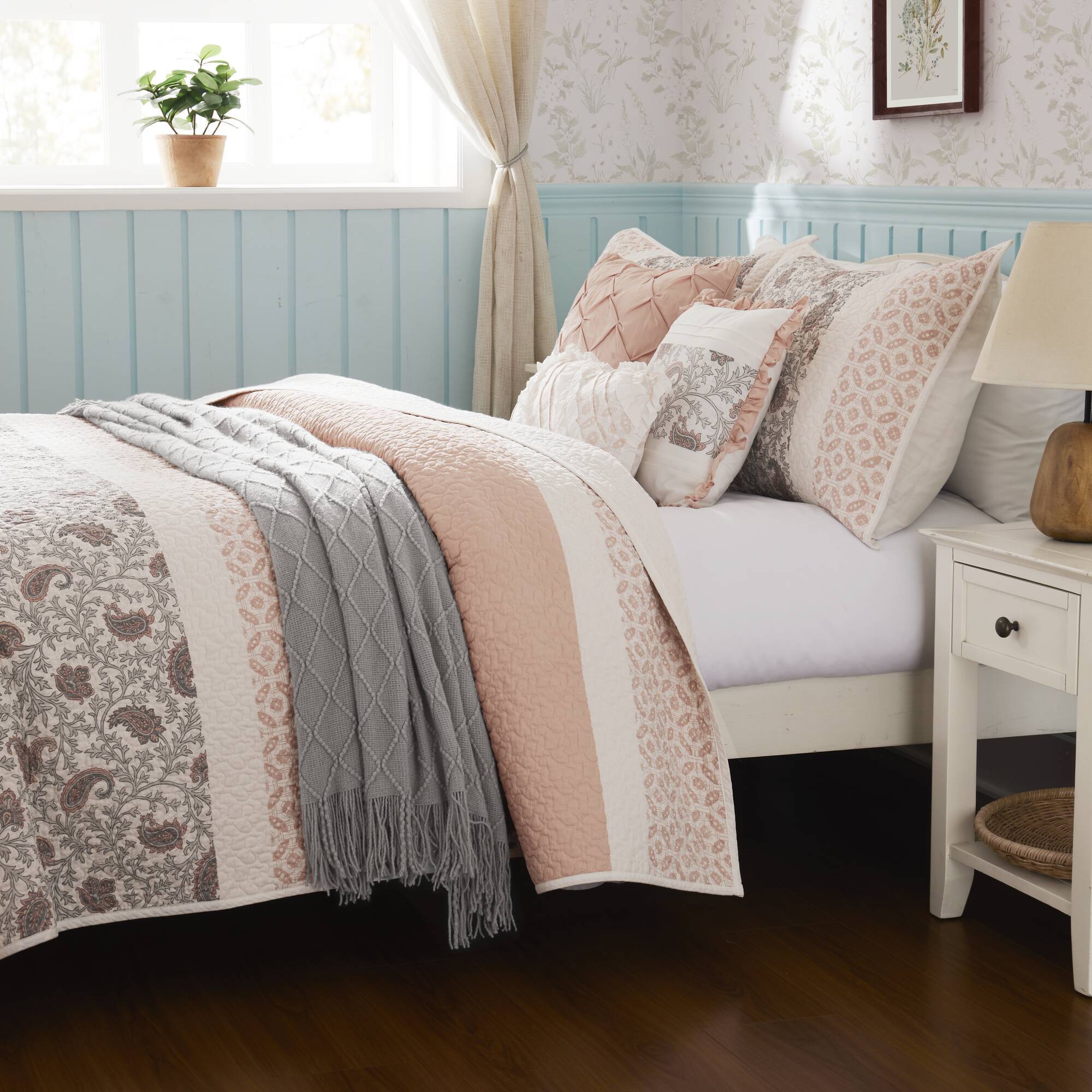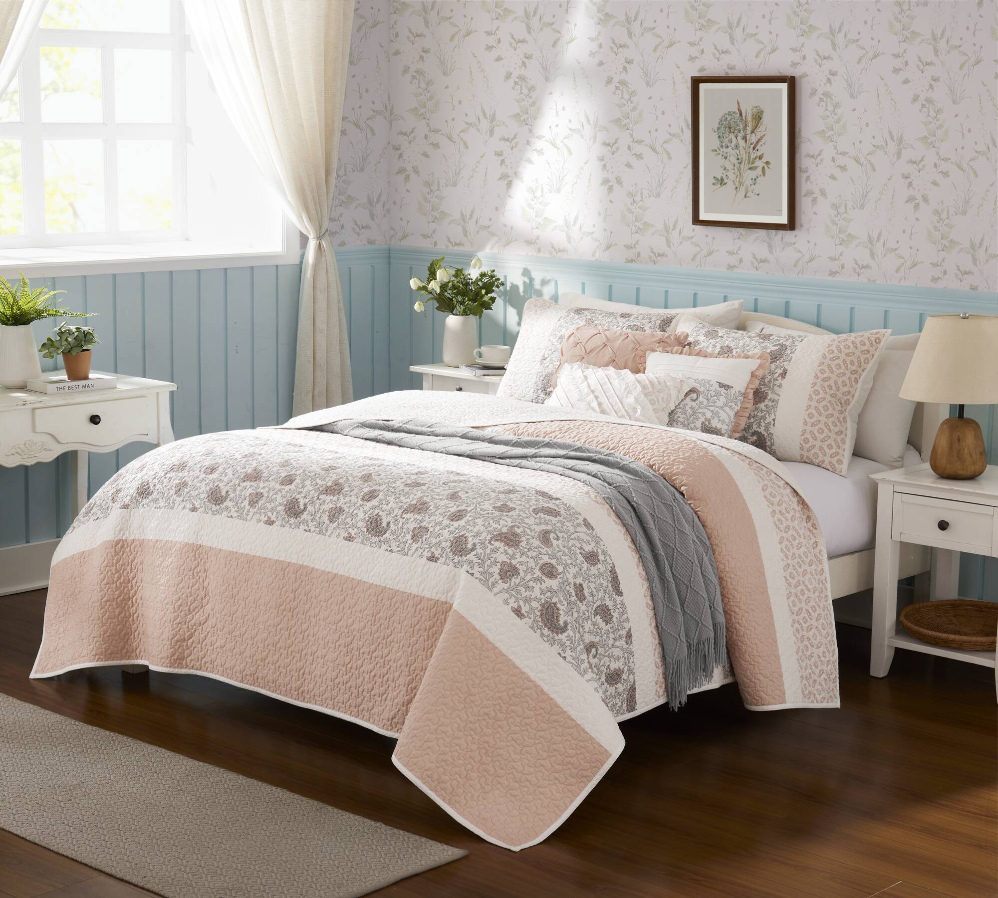 • Cottage and shabby chic 6 piece quilted quilt set