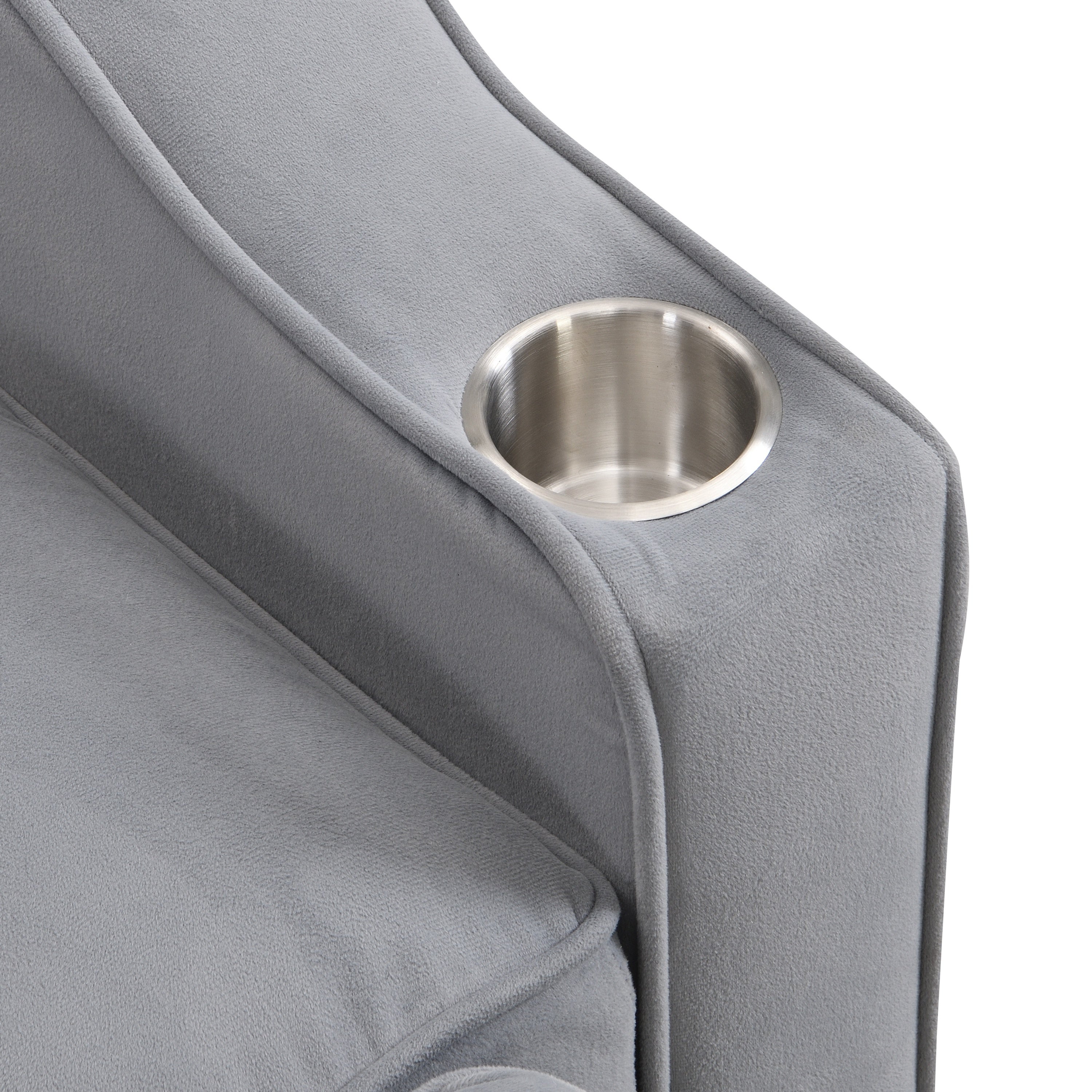 Modern Velvet Loveseat Futon Sofa Couch with Pullout Bed, Adjustable Backrest, Toss Pillows, Light Gray