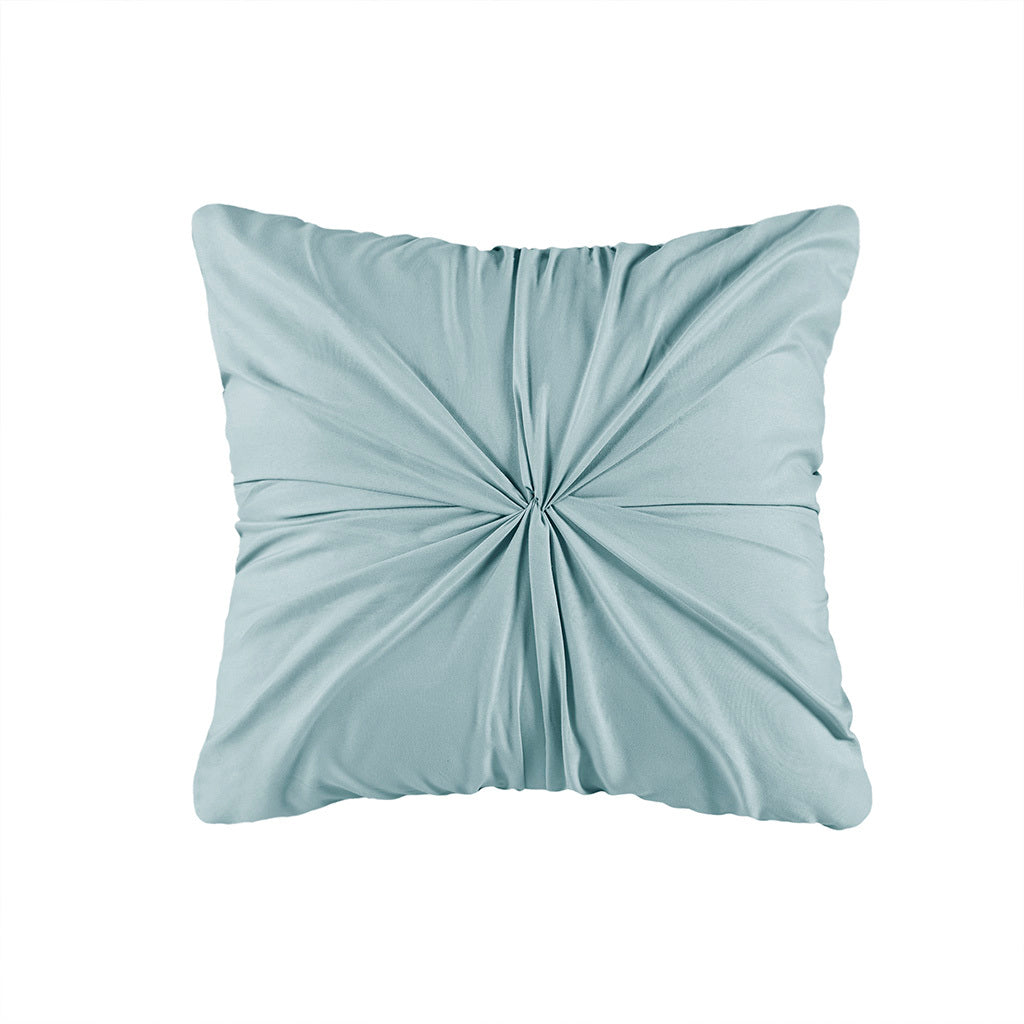 • Throw pillow features gathered fabric technique