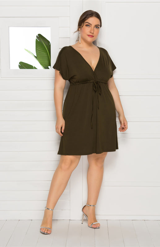 Women's Plus Size Deep V Solid Dress