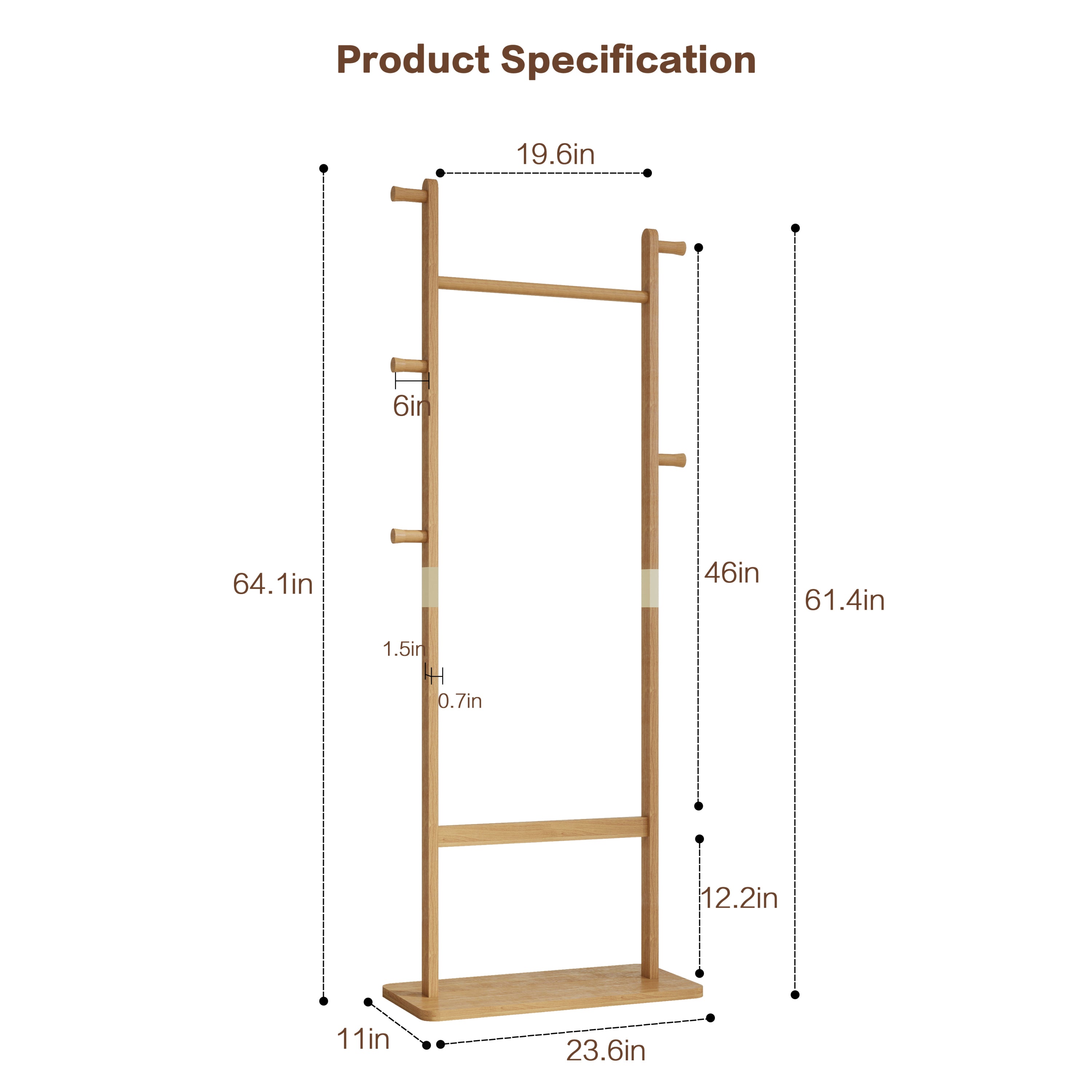 Solid Wood Coat Rack with Hanger, 23.6" x 11" x 64.1", Eco-Friendly and Easy to Assemble, Stylish Bedroom/Entrance/Living Room Stand, Burly Wood Finish