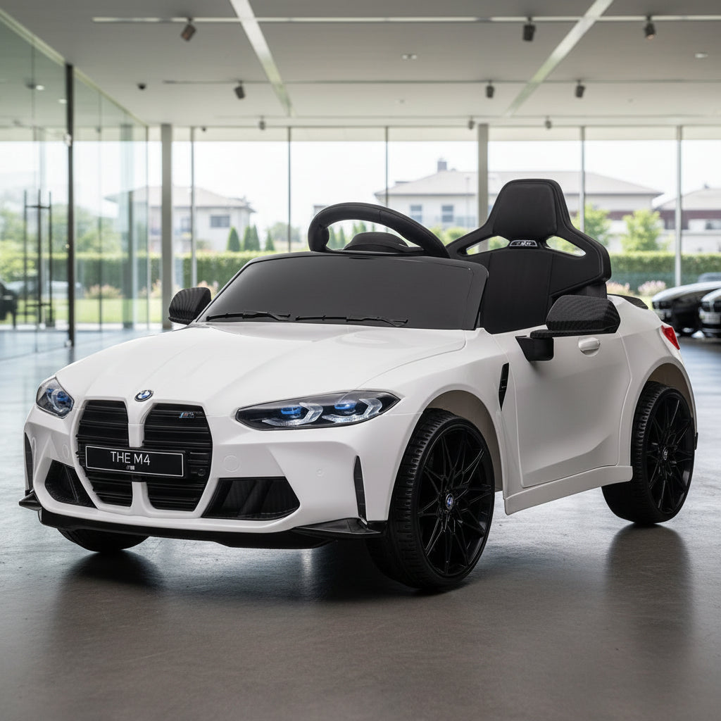 BMW M4 12V Kids Electric Ride-On Car with 2.4G Parent Remote Control – 3 Speed, Bluetooth, LED Lights, Music, USB & Easy Carry Handle