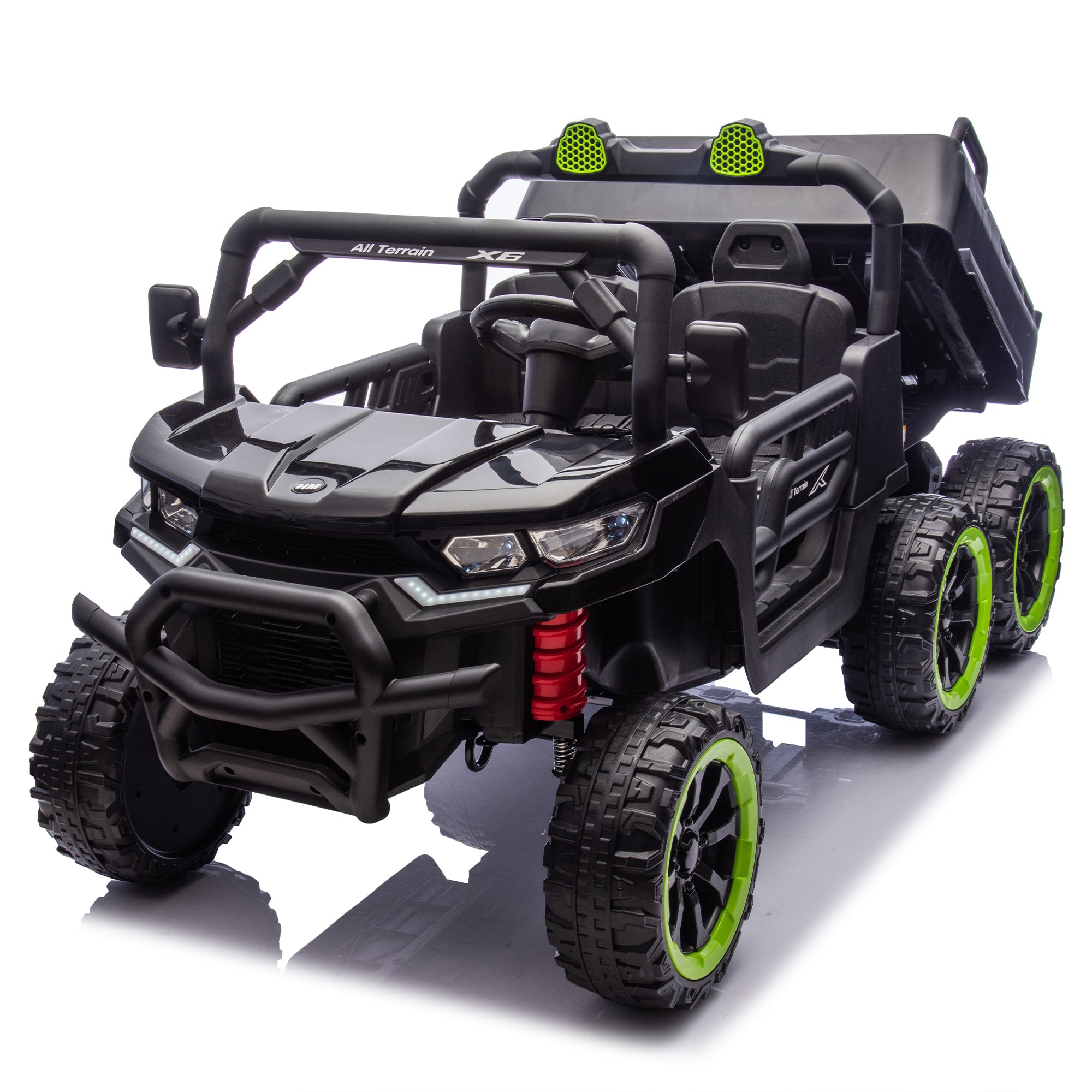 24V Two-Seater Electric Dump Truck Ride On – 4WD, 6-Wheel Suspension, Parent Remote Control, Music & Bluetooth – UTV with Shovel for Kids 2-6