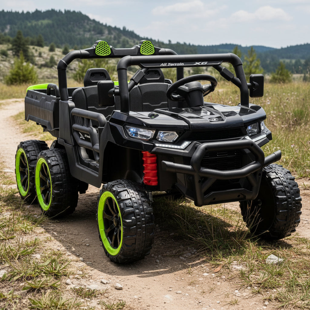 - Six-Wheel Suspension: The six-wheel independent suspension system effectively absorbs road vibrations, reducing bumps and providing a more comfortable ride. It protects children's spines and physical development, ensuring smooth driving even on uneven surfaces.